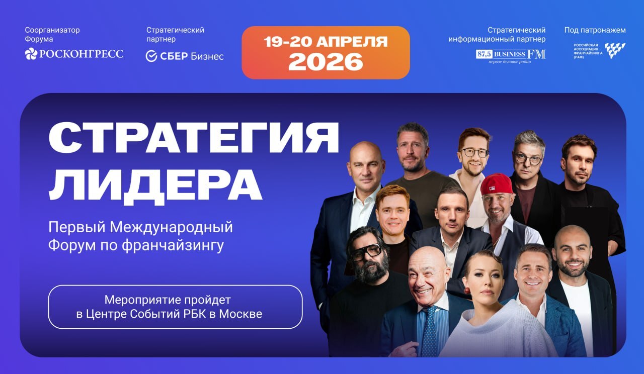 19–20 апреля в Москве лидеры российского и международного бизнеса соберутся на Форуме «Стратегия Лидера», чтобы обсудить будущее франчайзинга, новые точки роста и стратегии масштабирования в меняющемся мире.